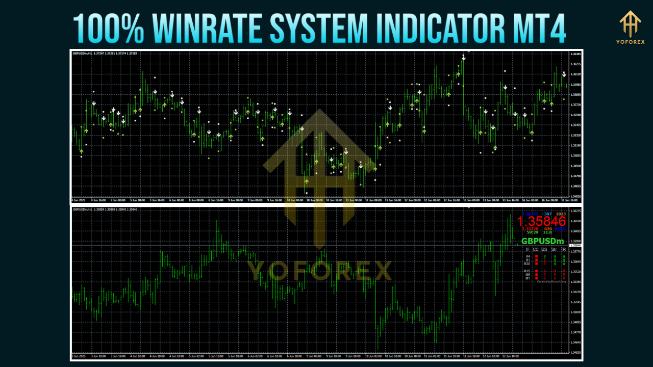 The 100% Winrate System Indicator MT4 is a custom-built tool for MetaTrader 4 that scans price action across any currency pair and timeframe, generating exact buy and sell signals at the close of each candle. Its core components include: