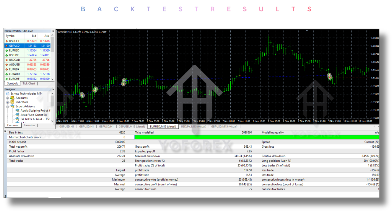 Backtests show that Abella Scalping Robot EA V1.0 MT4 has a consistent profit record, especially during high liquidity market conditions. Traders can expect fast trade execution with minimal slippage, ensuring that the strategy works as intended even during volatile moments.
