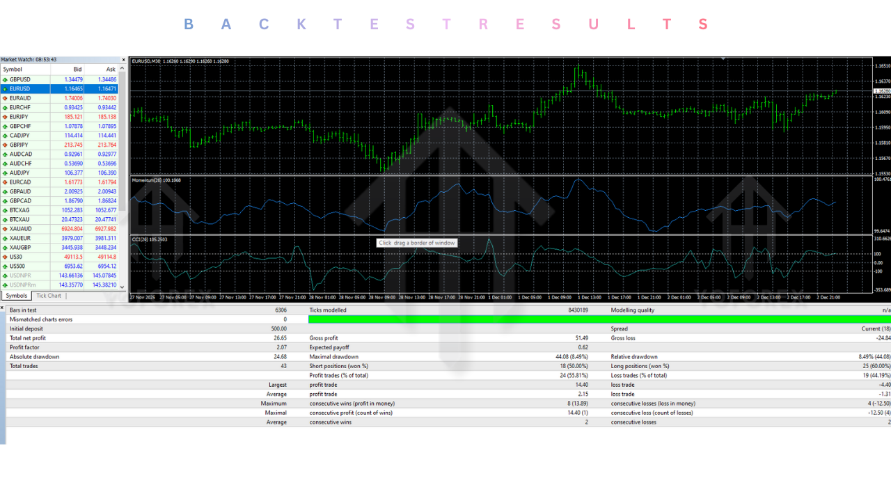- Asset Class: Major Pairs (EURUSD, GBPUSD) and Crosses (EURJPY).