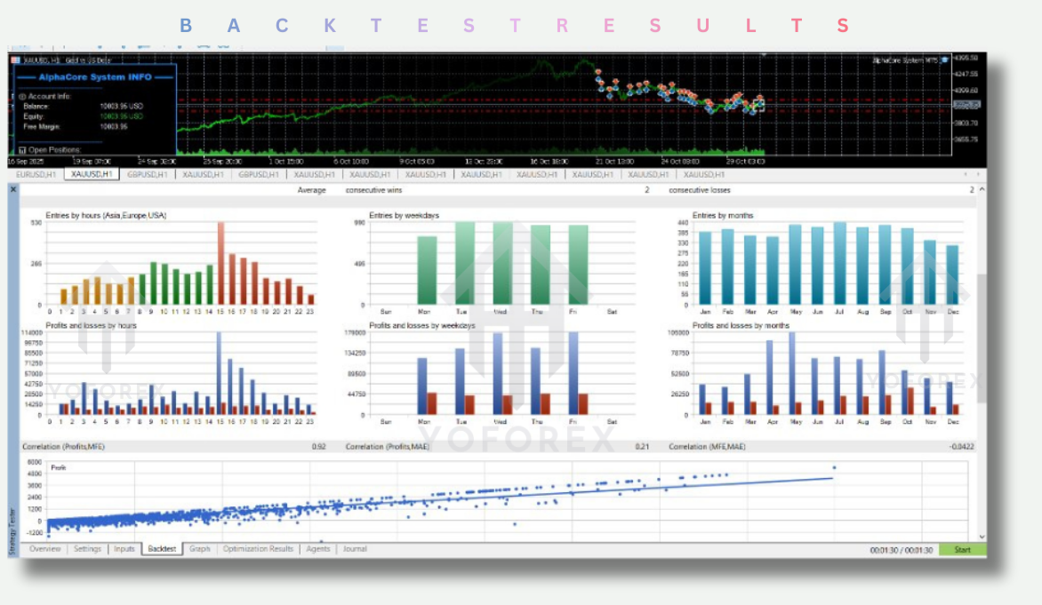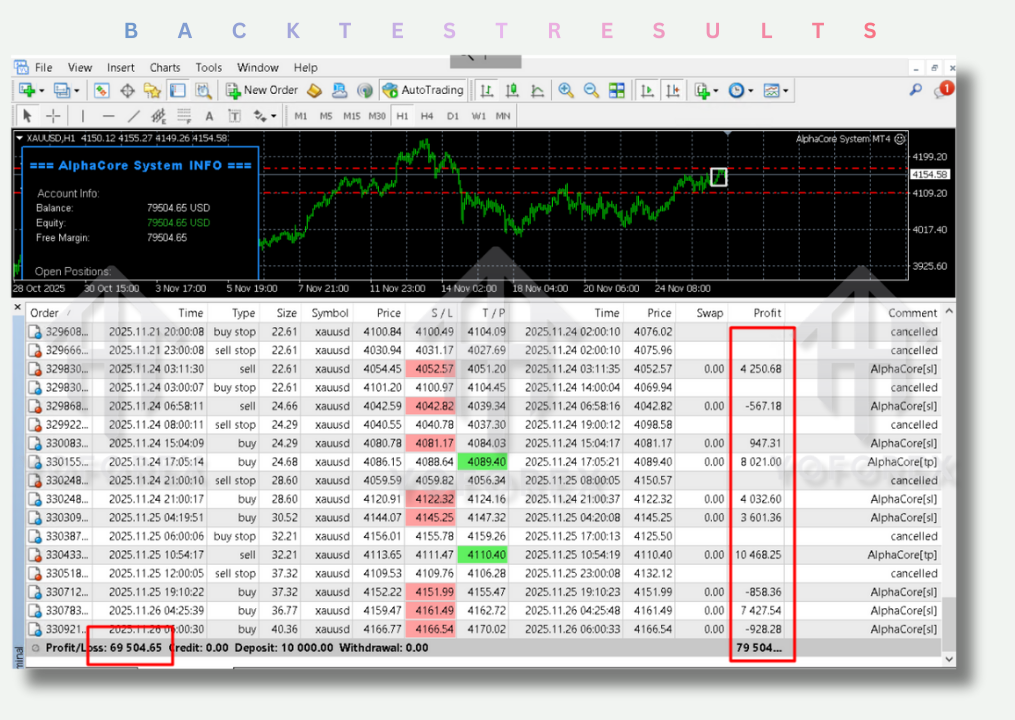 AlphaCore System EA V2.0 MT4 is primarily optimized for gold trading, specifically XAUUSD. Gold is known for its strong momentum phases and clear directional moves, which align well with breakout-based strategies.