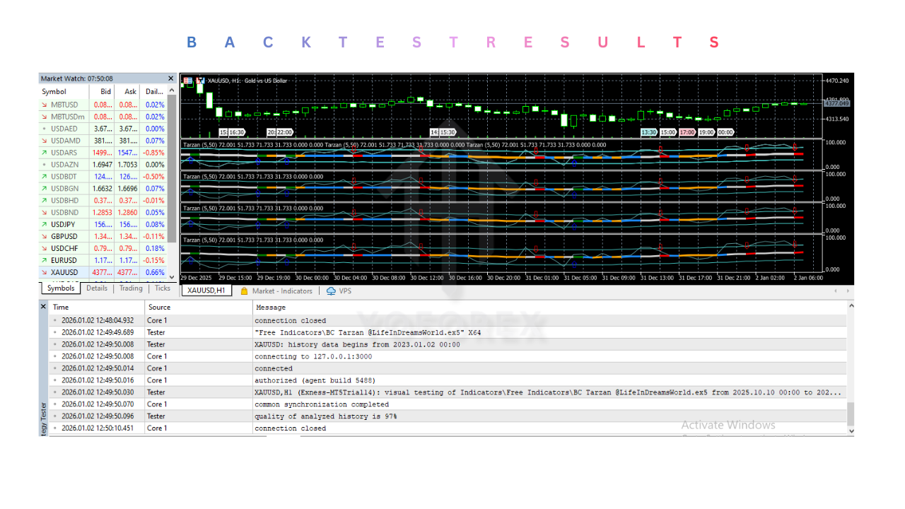 The BC Tarzan Indicator works well with various asset classes, such as forex pairs, commodities (like gold and oil), and stock indices. This flexibility allows traders to use it across different markets and timeframes, making it a truly versatile tool. -
