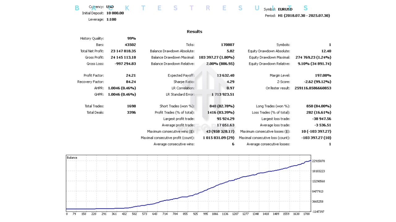 The EA offers extensive customization options. Traders can adjust key settings like lot size, risk parameters, stop loss, take profit, and other variables to match their specific trading goals. This level of flexibility makes the EA adaptable to both conservative and aggressive trading strategies.