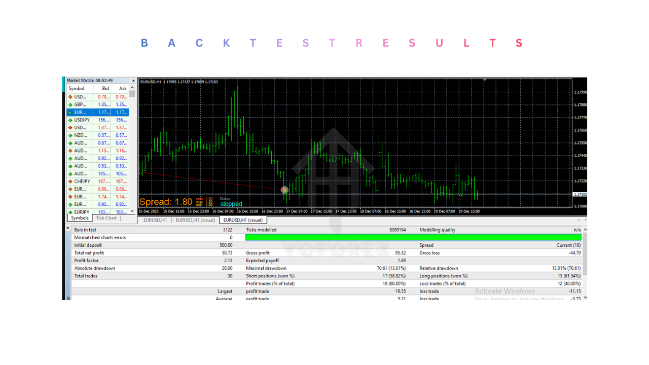 Before using the EA with real money, traders can test it on historical data (backtesting) to evaluate its performance. Additionally, forward testing is available to simulate live market conditions and ensure the EA performs as expected.