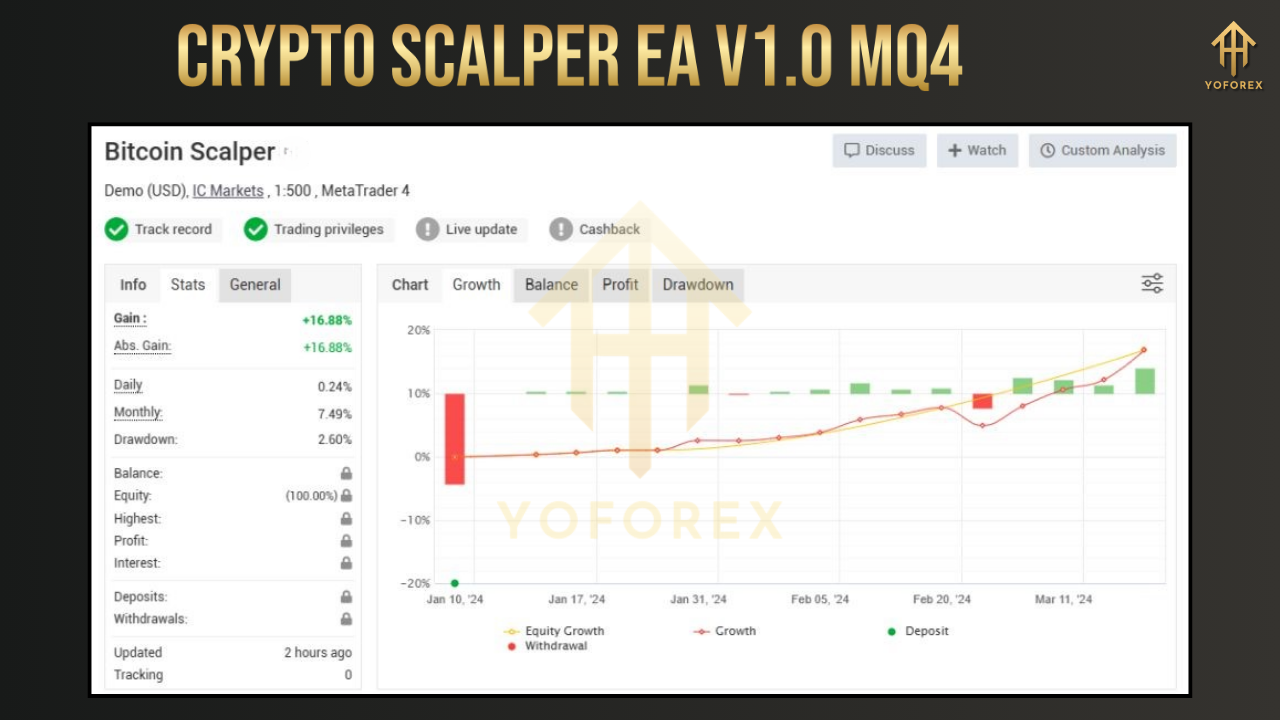 While Crypto Scalper EA V1.0 MQ4 has demonstrated strong backtested and demo results, all trading carries inherent risk: