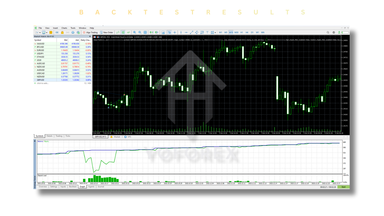 Backtesting results for Deep Frame EA V1.0 MT5 have shown strong profitability and solid risk management. Below is a summary of the backtesting results: