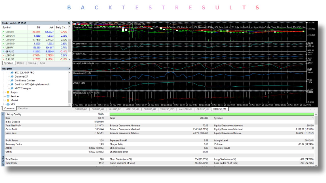 Rather than chasing high-risk strategies, Destroyer X7 EA aims for controlled trading behavior. This makes it more suitable for traders who prioritize account longevity over aggressive profit chasing.