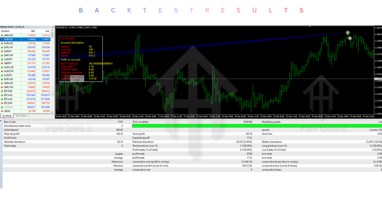 Passive Income Generation: The primary advantage of EA BASAN is automation. It monitors the markets 24 hours a day, executing trades during the Asian, London, and New York sessions. This allows you to generate potential income without sacrificing your time or sleep.