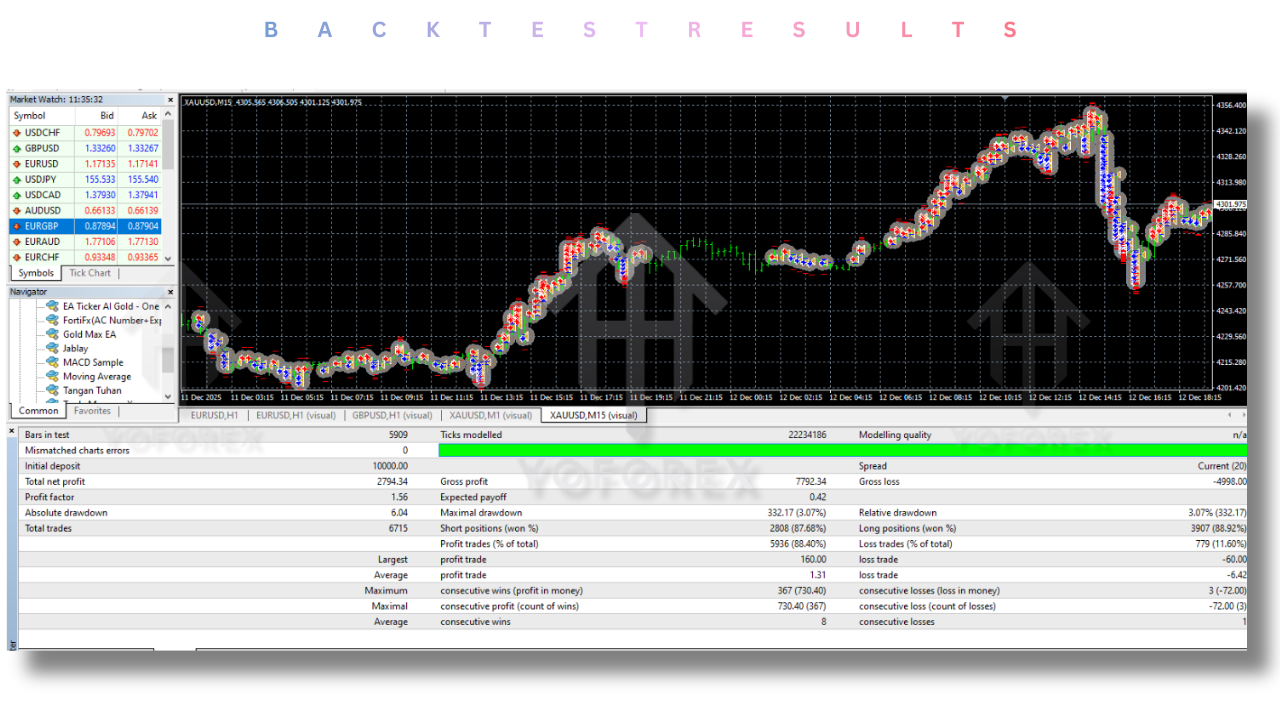FortiFx EA is designed to optimize trading entries through advanced market signals, risk filters, and trailing stops. This results in automated gold trading that is both low-risk and profitable. The EA's adaptive scaling logic ensures that it can adjust to market volatility, which means it can handle fluctuations without excessive drawdowns.