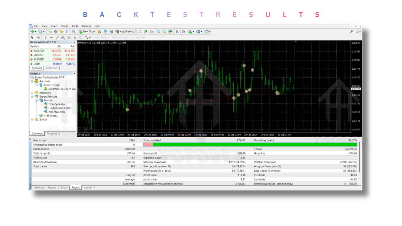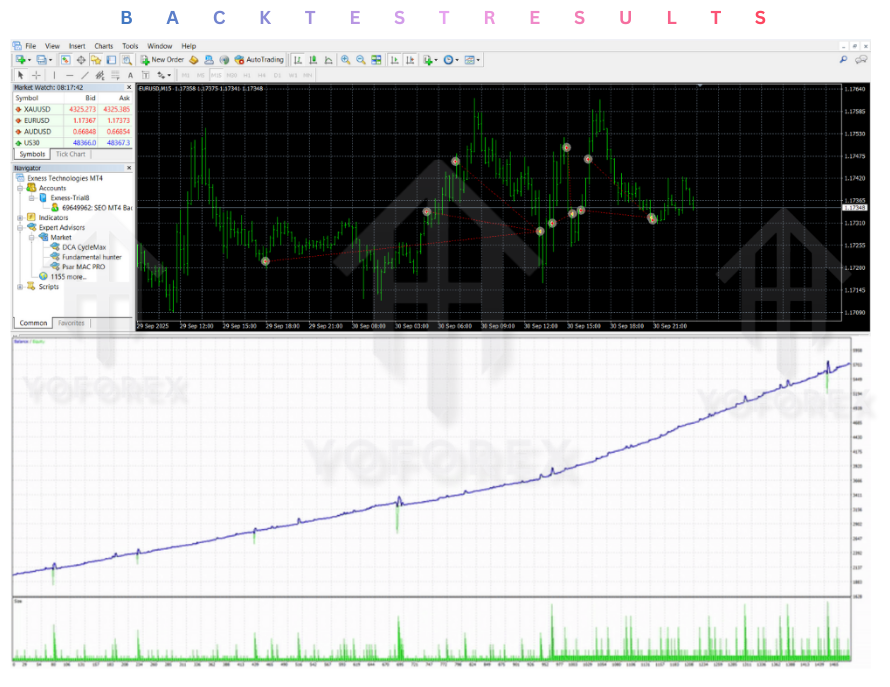 The EA works on all major forex pairs and can be applied to multiple timeframes. Whether you're trading on a daily, H4, or M1 chart, the EA can adjust its strategy to suit the market’s behavior.