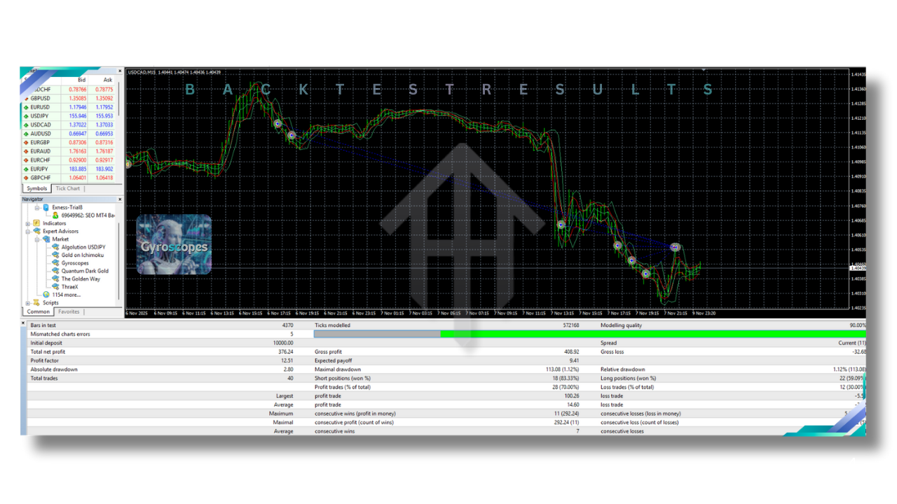 Designed natively for MT4, Gyroscopes EA V4.7 ensures broad broker compatibility, stable execution, and predictable performance behavior.