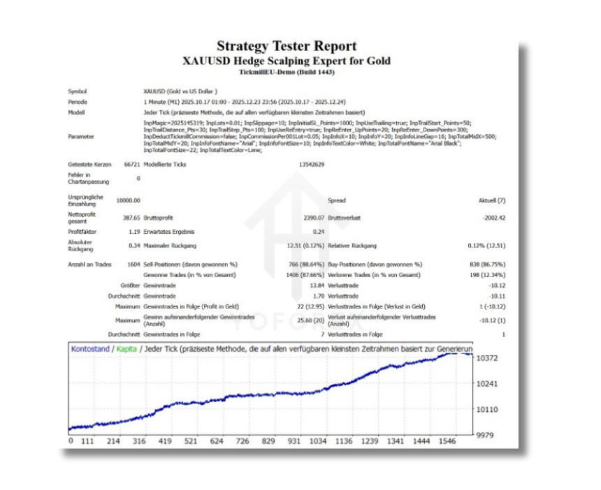- Steady Profits: The EA is designed to take small, consistent profits over time. While each individual trade may yield only a small profit, the frequency of trades means that these profits add up over time, making it a powerful tool for long-term growth.