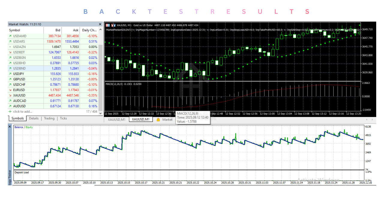 MarketPeckerGOLDV3 EA has been rigorously backtested across various market conditions, particularly with the XAUUSD pair. The backtests show consistent profitability and low drawdown over extended periods, highlighting its reliability for long-term trading.