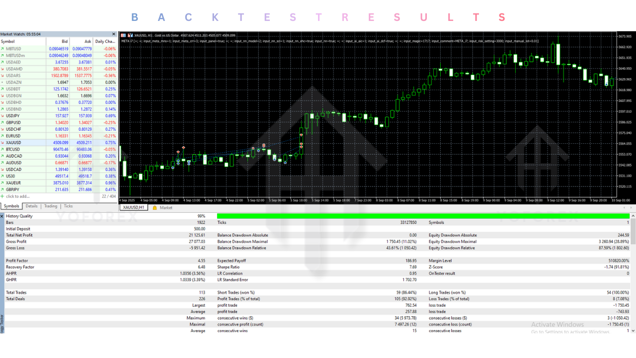 - MT5 Architecture Optimization: Being natively built for MetaTrader 5, the EA takes full advantage of the platform’s multi-threaded backtesting capabilities and faster execution speeds.