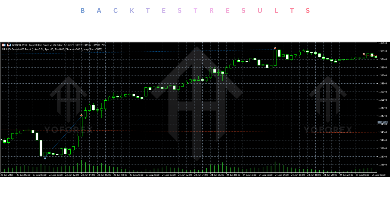 Trading the GBPUSD, often referred to as "Cable," is a double-edged sword. It offers some of the most significant intraday moves in the Forex market, driven by the complex economic interplay between the UK and the US. However, this volatility can be treacherous for manual traders and poorly coded robots alike. The MR P FX Genesis 800 distinguishes itself by targeting the M30 (30-Minute) timeframe. This strategic choice allows the Expert Advisor (EA) to filter out the chaotic market noise found on M1 or M5 charts while still being agile enough to capture intraday trends before they exhaust.