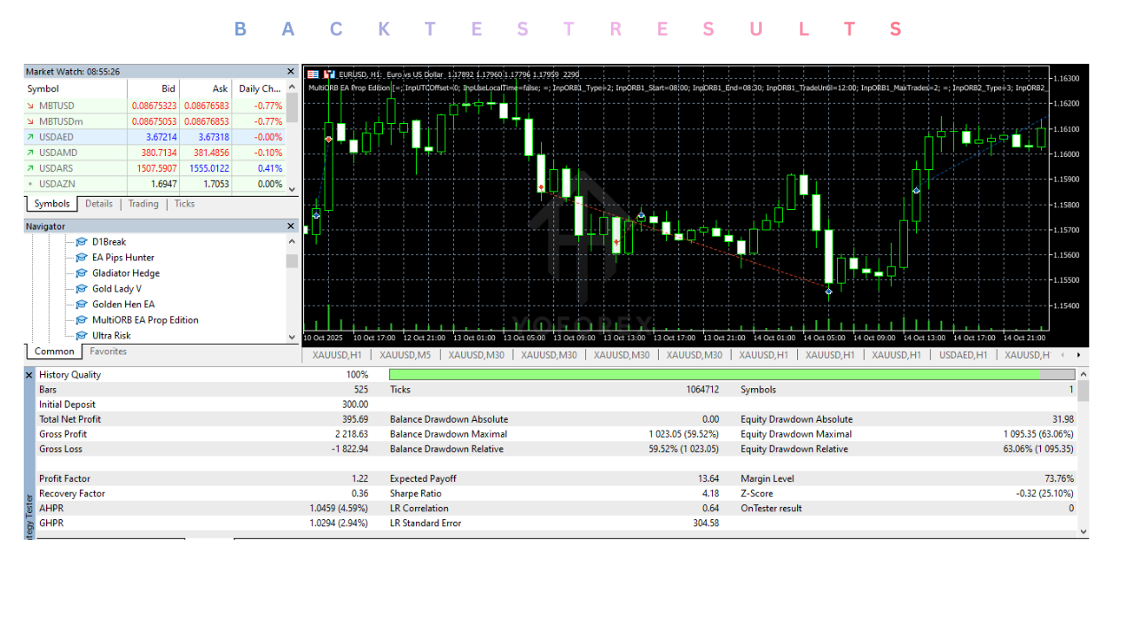 MultiORB EA V6.1 offers powerful backtesting capabilities, allowing traders to evaluate its performance using historical data before deploying it on live accounts. This ensures that users can fine-tune their strategy and optimize the EA for the current market conditions. Backtesting also provides valuable insights into how the EA might perform under various market scenarios, which helps in understanding its potential profitability and risk factors.