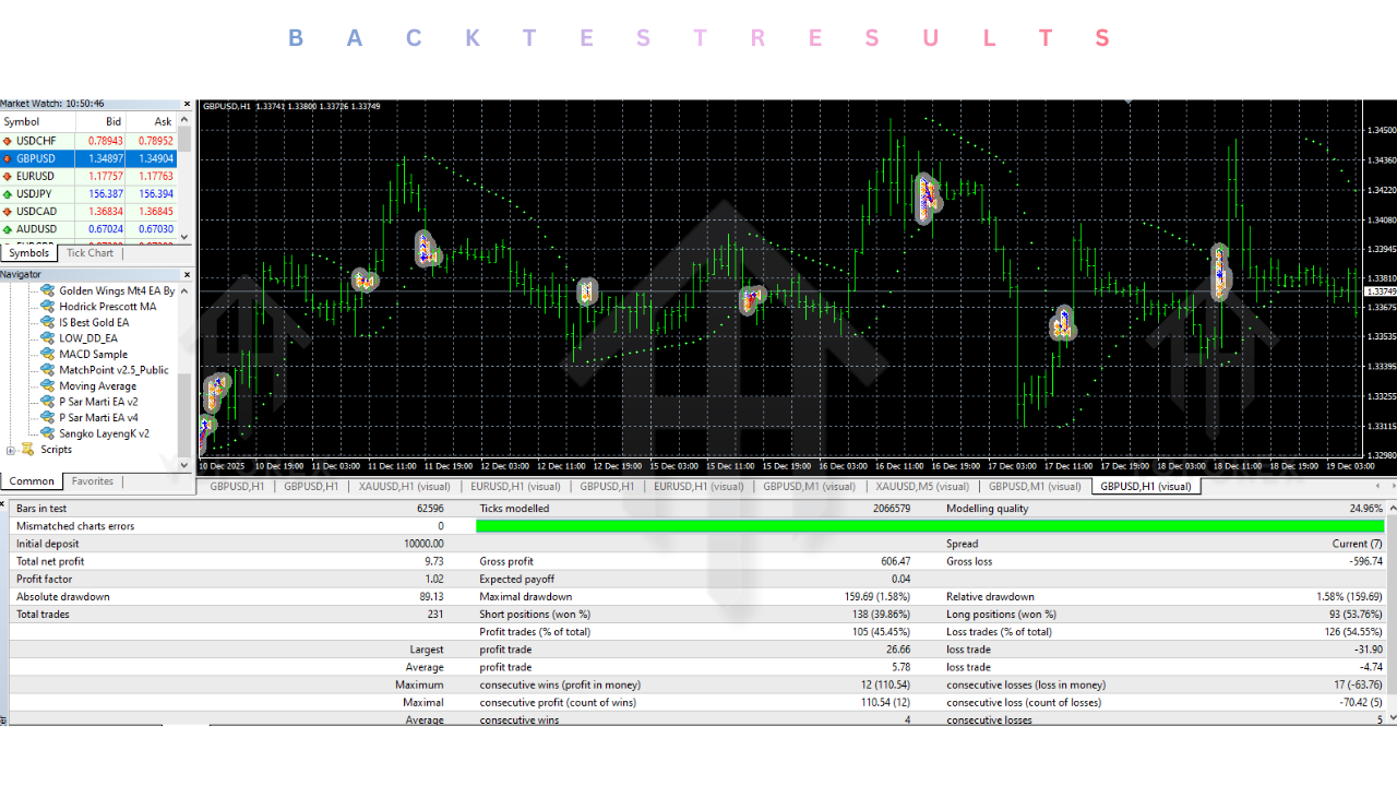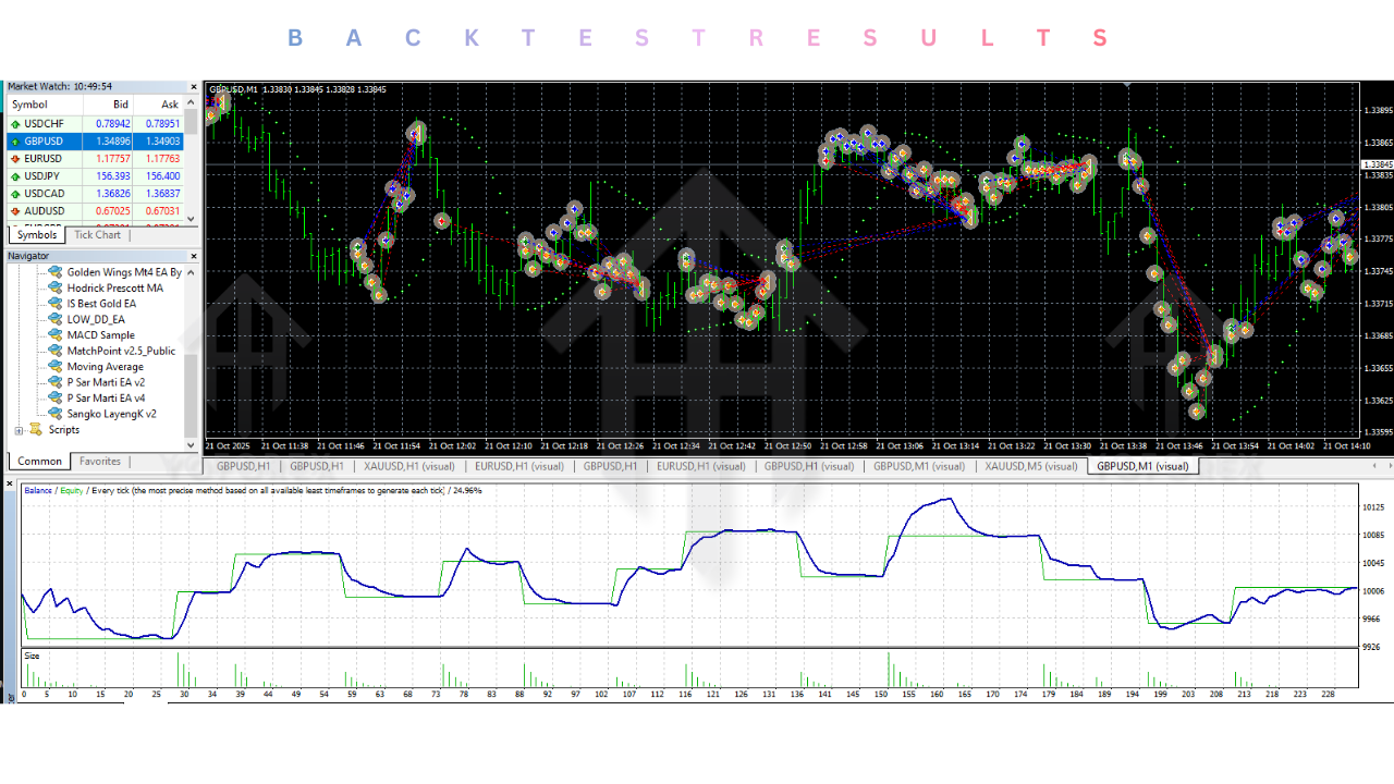 Backtesting P Sar Marti EA V2.02 MT4 shows what you’d expect from a properly tuned recovery EA—steady profit accumulation with controlled drawdowns, provided risk settings are realistic.