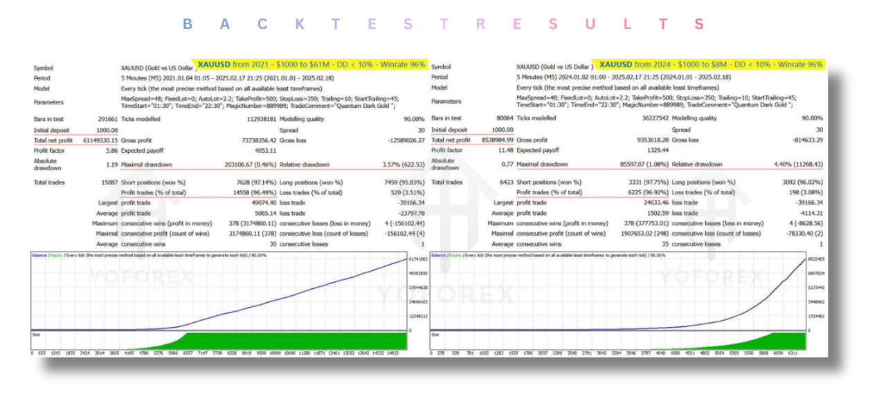 As with any trading system, it is important to perform thorough backtesting and verify the EA’s performance before using it with real money. Quantum Dark Gold EA has been tested extensively on historical data, and many users report positive results. However, it is crucial to note that past performance is not indicative of future results. Traders should always test the EA on a demo account before deploying it on a live account.