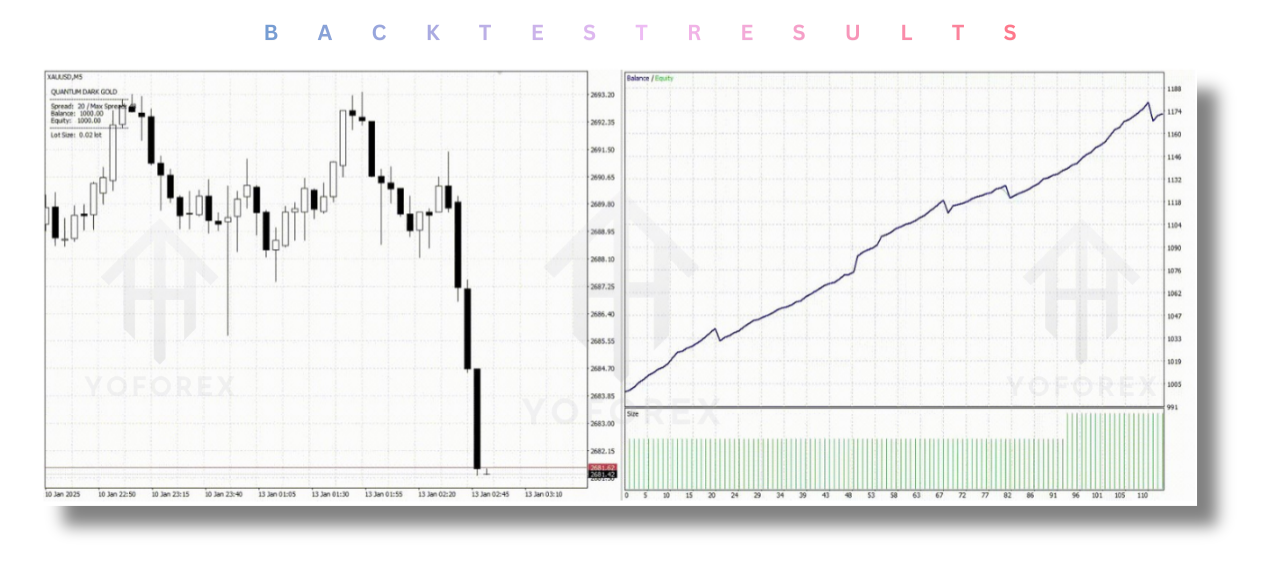 While Quantum Dark Gold EA is optimized for the M5 timeframe, it is flexible enough to be used on M15 or H1 timeframes as well. This makes the EA adaptable to different trading styles. Short-term traders who prefer quick trades can use the M5 timeframe, while those who prefer longer-term strategies can adjust the settings to suit their needs.
