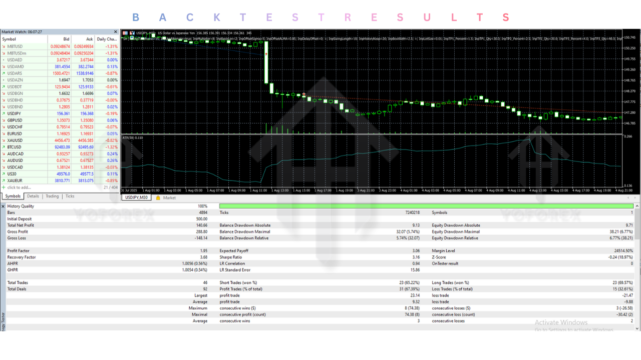 - Trend Reliability: The M30 timeframe on USDJPY is one of the most reliable trends in Forex, making the strategy highly consistent.