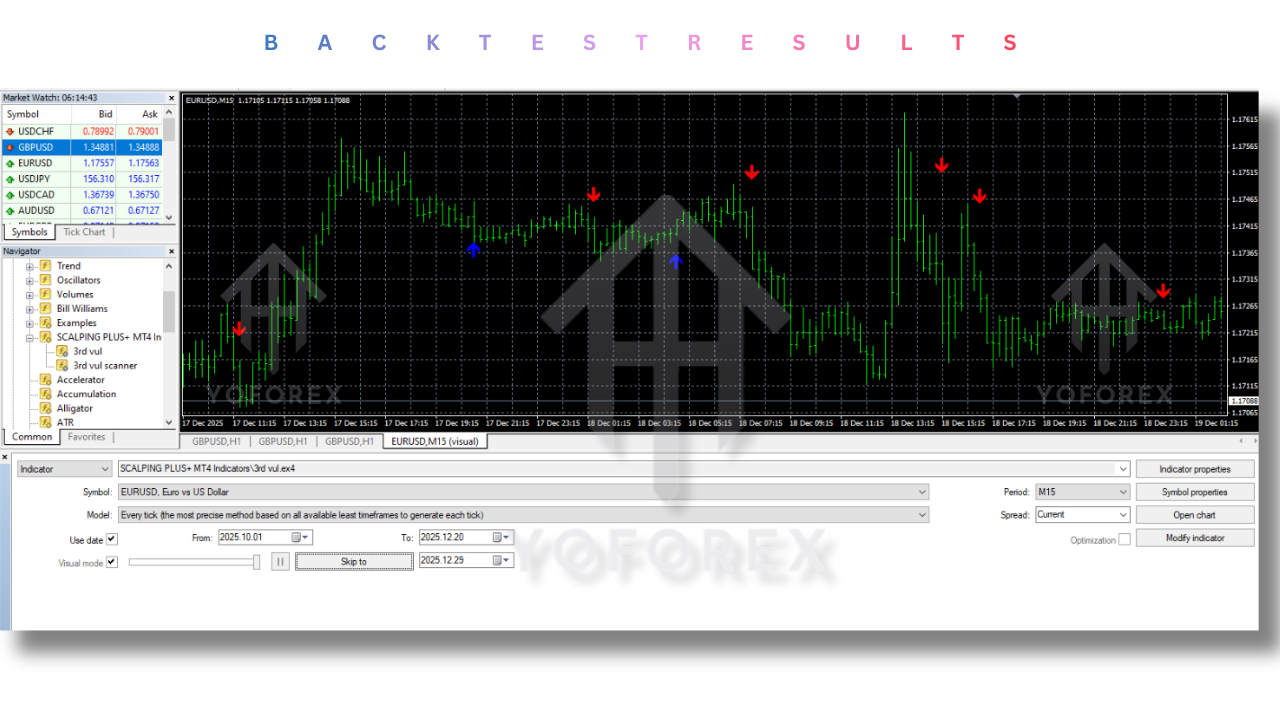 Backtesting on SCALPING PLUS Indicators V1.0 MT4 shows consistent behavior across different market phases. On major pairs like EURUSD and GBPUSD, the indicator demonstrates stable signal accuracy during active sessions such as London and New York.