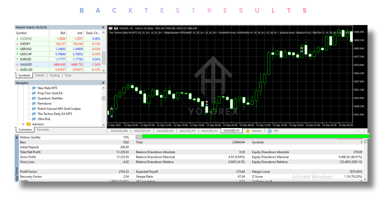 Backtesting is an essential step when evaluating any Expert Advisor. Techno Deity EA V1.0 MT5 shows structured behavior during historical testing when used with proper data quality.
