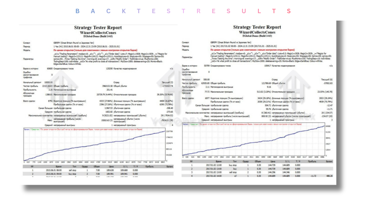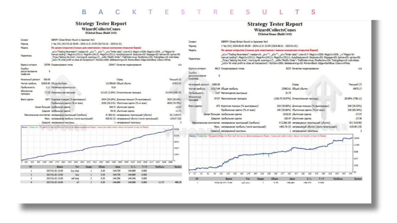 The core strategy behind Wizard Collects Cones EA V1.0 MT4 revolves around the dual pending orders system. The EA places two types of orders simultaneously:
