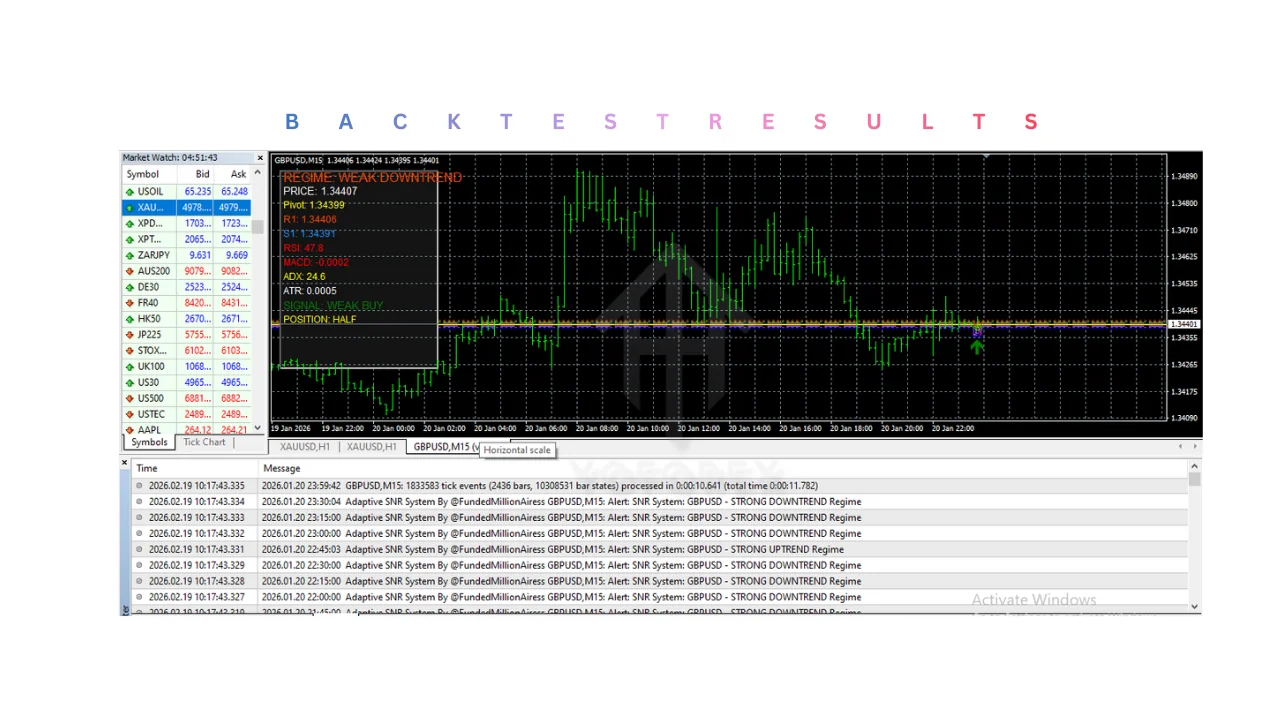 - Swing Trading: Over H4, adapts to weekly SNR shifts, capturing 200-pip swings in USD/JPY trends.