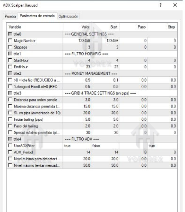 To optimize the performance of the ADX Scalper XAUUSD EA, it is important to set the parameters correctly: