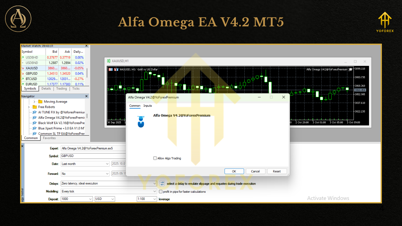 - Download Alfa Omega EA V4.2 from MQL5.software.