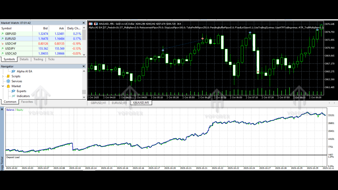 YoForex’s internal testing shows that Alpha AI EA V1.09 MT5 captures strong directional moves by analyzing smart money footprints rather than indicators alone.
