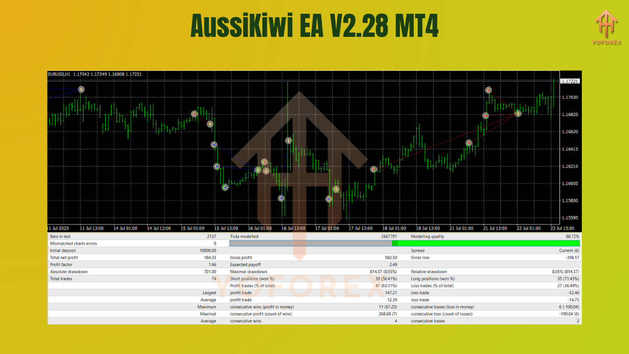 Trading cross pairs like AUDCAD, AUDNZD, and NZDCAD can be tricky. They’re influenced by both commodity markets and global risk sentiment, making them less predictable than majors. That’s why YoForex built the AussiKiwi EA V2.28 MT4 — a specialized multi-currency Expert Advisor designed to handle these pairs with precision.