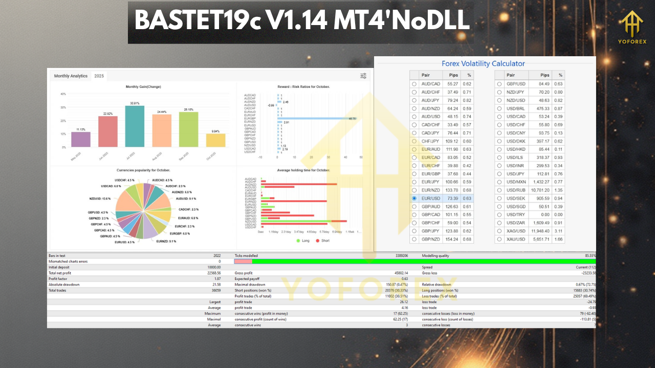 - Automation: BASTET19c EA automates the trading process, reducing the need for manual intervention and allowing traders to capitalize on market opportunities 24/5.