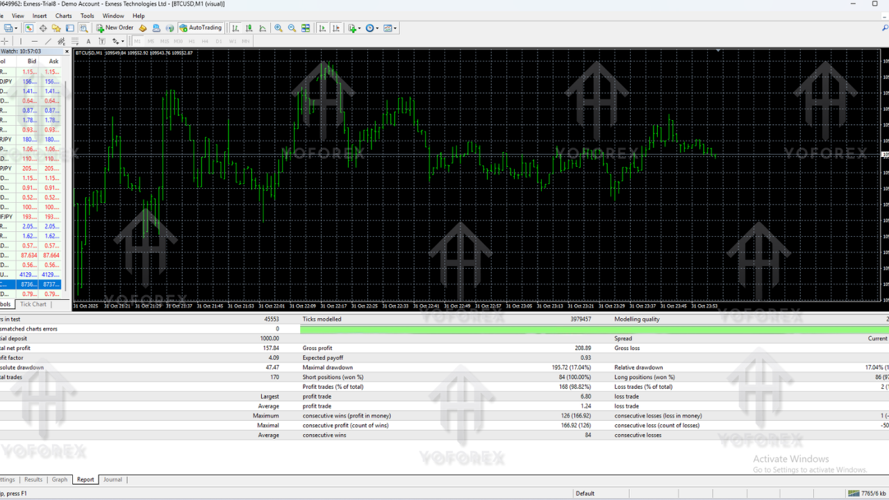 The EA performs extremely well when the market structure is clean and directional. For choppy sideways markets, the volatility filter protects against overtrading.
