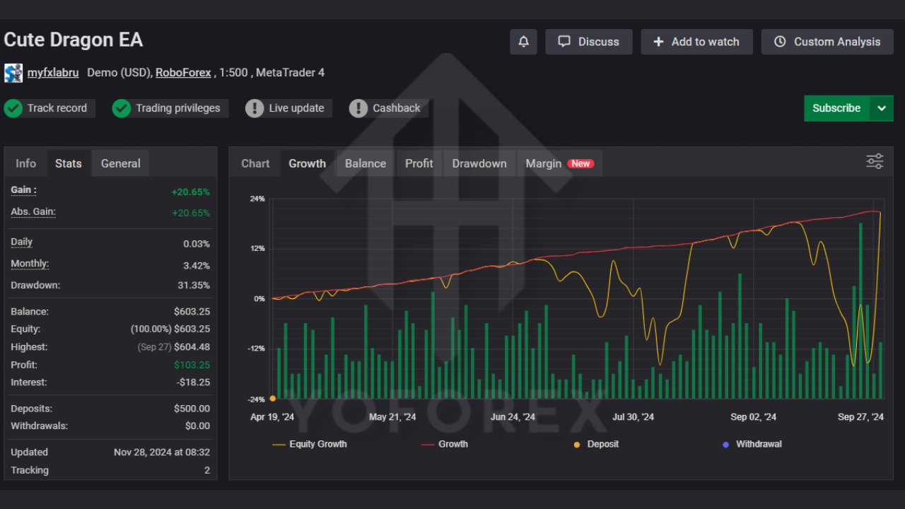 When used with proper risk control, reliable brokers, and a stable VPS, CuteDragon ALGO EA MT4 can become a powerful companion for traders who want to step into algorithmic trading without needing to code their own strategies.
