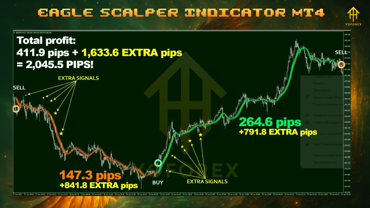 - Trigger: wait for an Eagle Scalper signal in the direction of the bias on a closed candle.