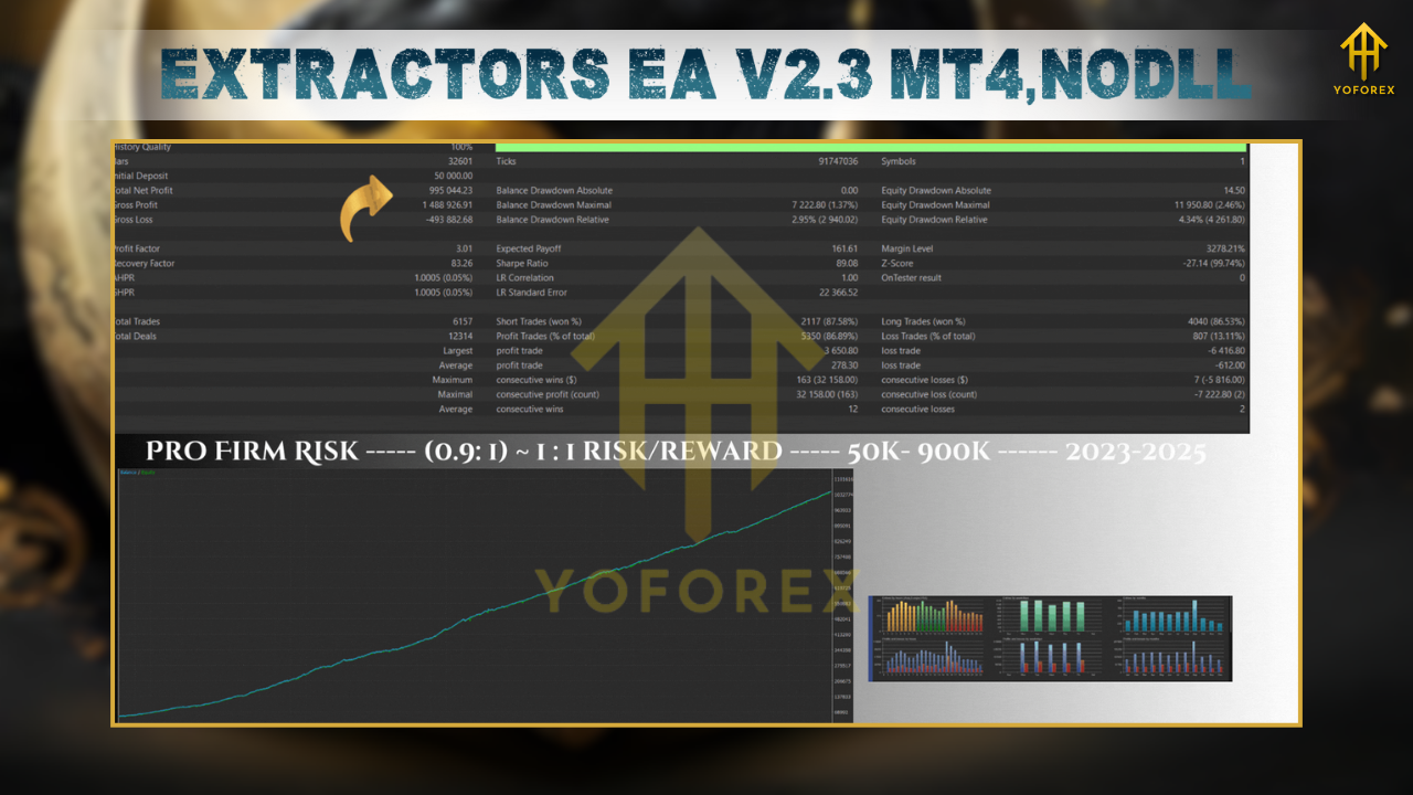 Extractors EA V2.3 comes with backtest data to help users analyze its performance in historical market conditions. This feature allows traders to evaluate the EA’s effectiveness before deploying it in live trading.