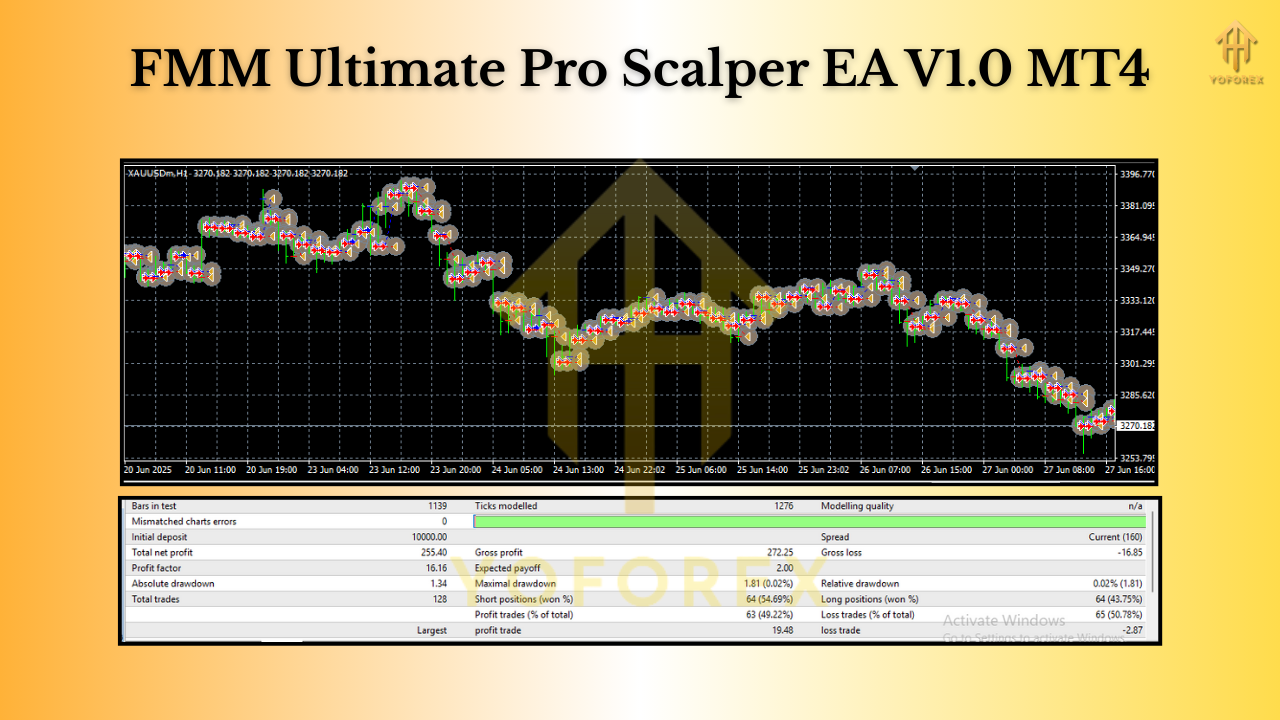 Scalping is simple to describe but hard to execute consistently. Most bots either overtrade in choppy sessions or freeze when spreads widen. FMM Ultimate Pro Scalper EA V1 tackles those pain points by combining: