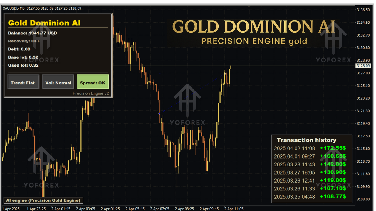 Gold Dominion AI EA V2.0 MT5 is an advanced automated Expert Advisor developed specifically for gold trading on MetaTrader 5. The EA uses a hybrid trading engine combining: