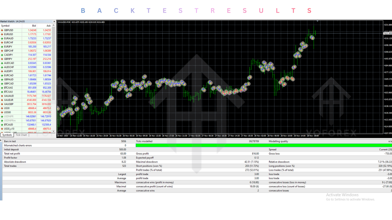 Historical Data: Tests were conducted using 99.9% modeling quality tick data, covering the period from 2020 to 2024. This period includes the extreme volatility of the pandemic, the subsequent inflation trends, and geopolitical conflicts, providing a robust stress test for the strategy.