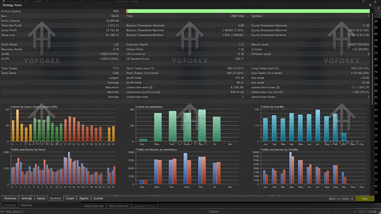 The EA functions best on timeframes such as M15, M30, and H1. These timeframes provide stable movement while still capturing strong intraday trends. For gold, this is especially useful because the instrument can shift direction rapidly when news releases occur. Operating on mid-range charts allows the EA to avoid extremely short-term noise while maintaining responsive trade entries.