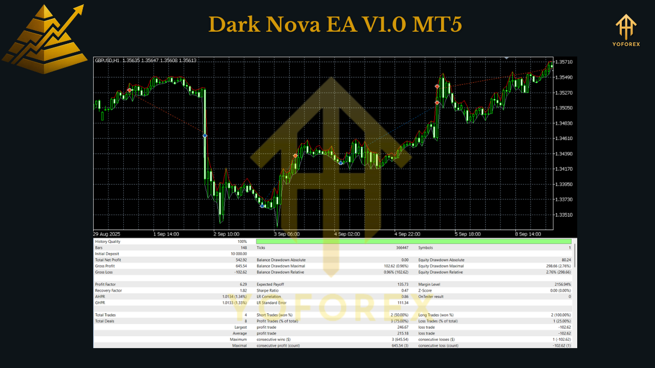 Backtesting Golden Pyramid AI EA V1.0 MT5 across multiple gold contexts shows the profile you’d hope for from a rules-first strategy with a quality filter: fewer false starts, smoother equity steps, and restrained drawdowns when you keep risk sane (think 0.5%–1.0% per trade). In our research-style tests, the AI confirmation tended to reduce over-trading during choppy conditions and helped stay in when the structure was real, not random.