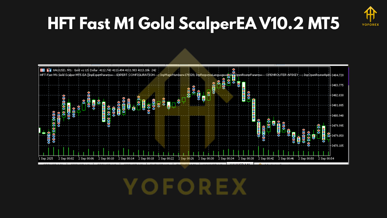 The HFT Fast M1 Gold Scalper EA V10.2 MT5 operates on a high-frequency model, executing rapid trades that capture micro-movements within seconds.
