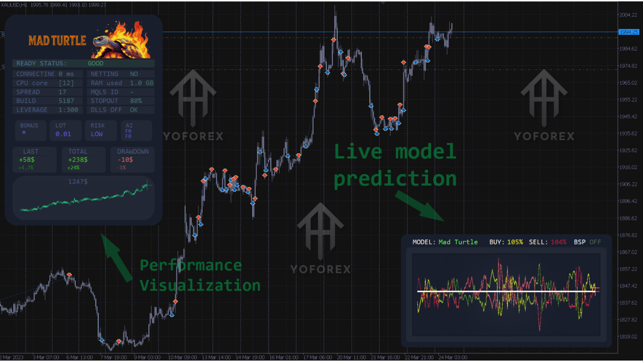 Mad Turtle EA V6.4 MT5 primarily trades XAUUSD and is built around directional modeling, micro trend recognition and volatility filtering. Gold moves differently from normal forex pairs. It reacts faster to economic news, liquidity changes and institutional flow. The EA studies these micro shifts to determine whether execution should be fast, delayed, or avoided during a given period.