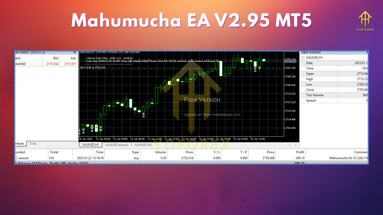 If you’ve been struggling to find a forex EA that adapts to market conditions without risking your account on high-risk strategies like martingale, look no further than Mahumucha EA V2.95 MT5. This free expert advisor from YoForex is designed to automate your trading while respecting risk management and adapting to market volatility.
