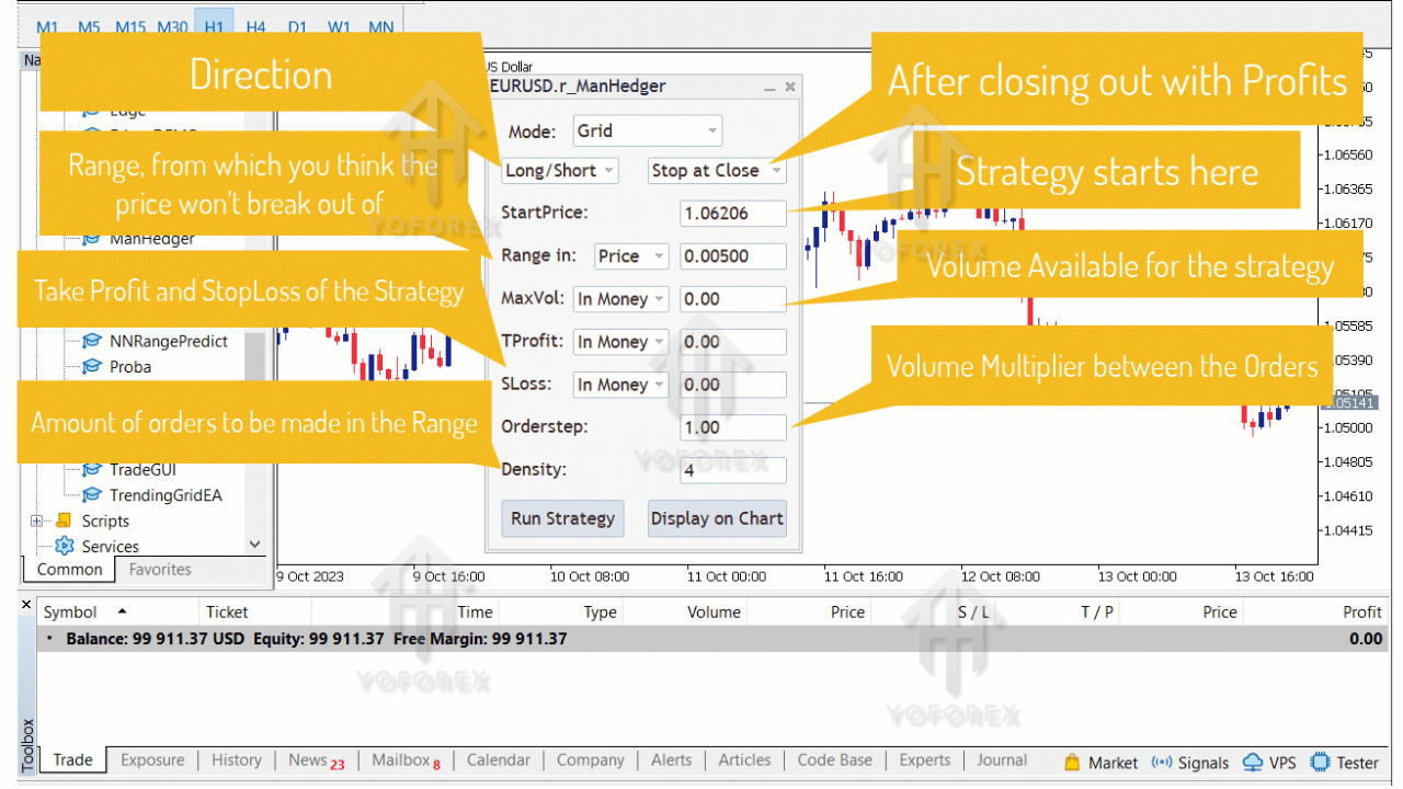 ManHedger EA V5.15 MT4 operates by placing trades based on your manual decisions while assisting with order management. The key features include:
