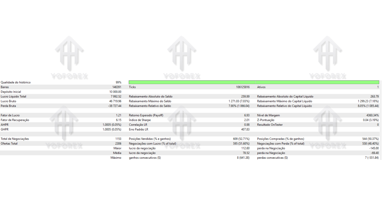 YoForex ran detailed simulations using real tick data. Below is a summary of the tested configuration: