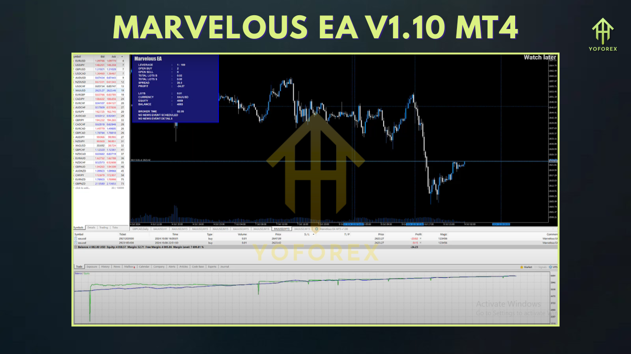 YoForex is committed to delivering free, reliable, and powerful trading tools to traders around the world. Marvelous EA V1.10 MT4 is a testament to our goal of providing robust solutions without hidden fees or unnecessary gimmicks. With no martingale/grid strategies and adjustable risk management, this EA is designed to give traders consistent, stable performance in real trading environments.