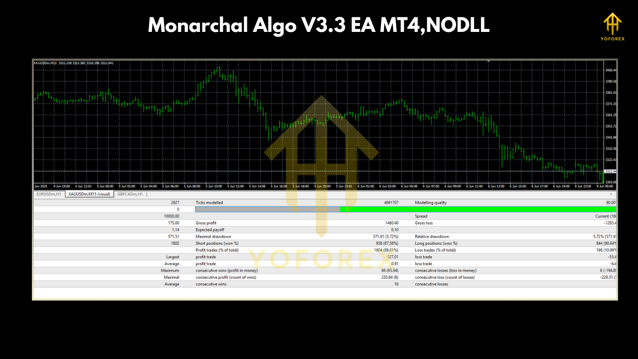 The Monarchal Algo EA V3.3 continuously scans the forex market, analyzing price action, volatility, and momentum. Once it detects a high-probability trade setup, it automatically places and manages the trade. Its combination of scalping and trend-following strategies ensures it can handle both short bursts of volatility and sustained price moves.