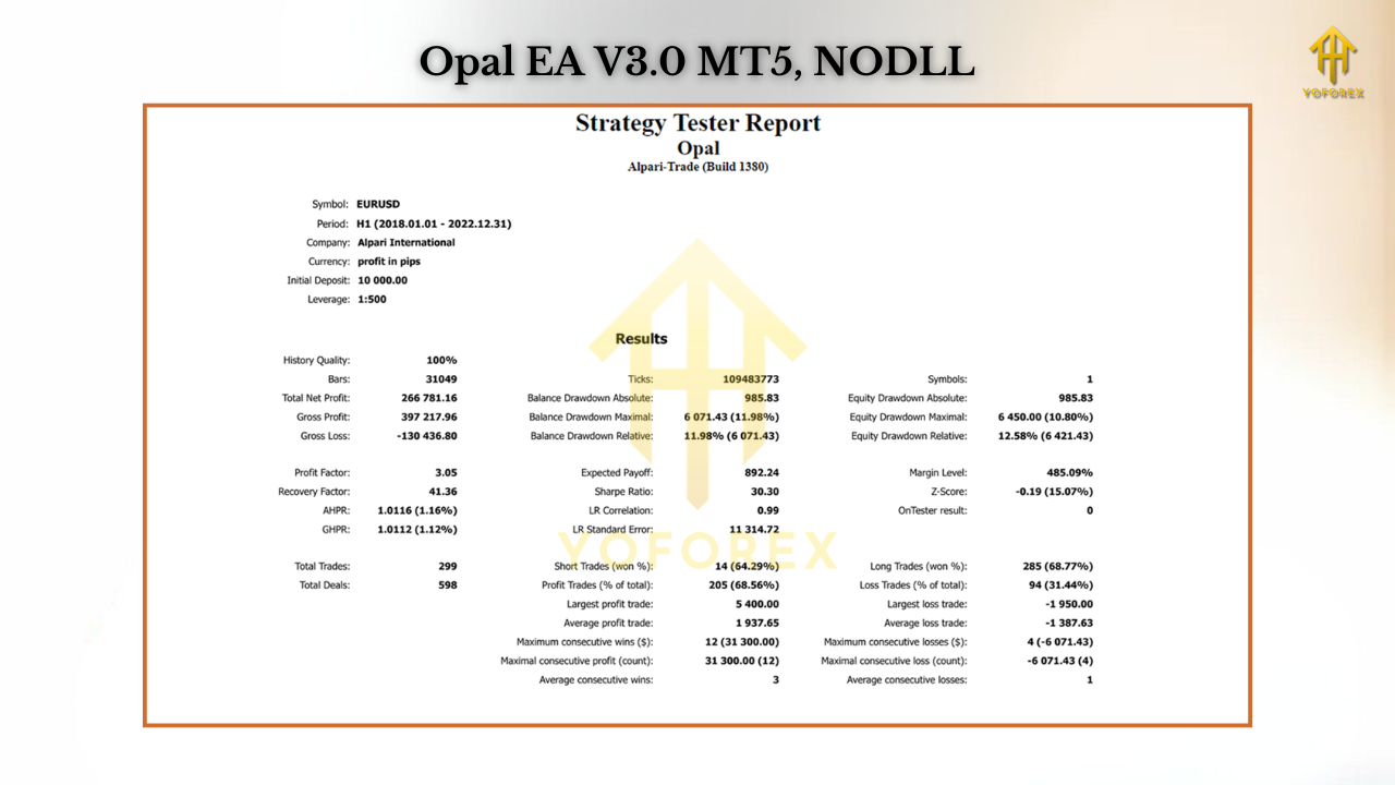 Opal EA is an automated trading system for MetaTrader 5, designed by YoForex and available for free on MQL5.software. It blends artificial intelligence, strict risk management, and flexible multi-currency support, making it suitable for beginners and advanced traders alike.