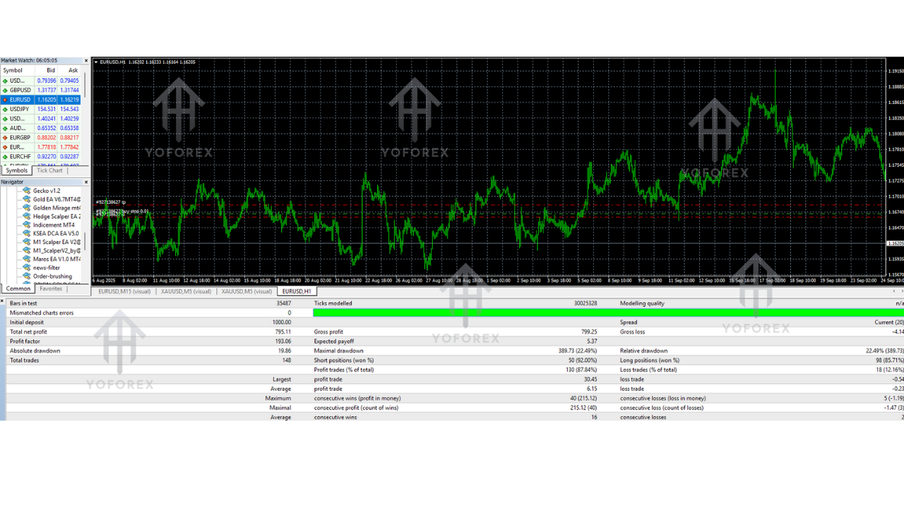 The robot monitors price action at a micro-level, analyzes volatility, and triggers trades exactly when its conditions align. No guessing, no panic entries. It primarily works best on major pairs and low-spread brokers, tho you can test it on any pair to see what suits your setup.